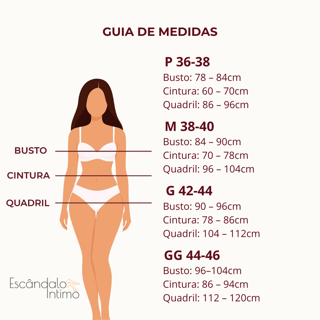 Para uma compra mais assertiva, use nosso guia de medidas: