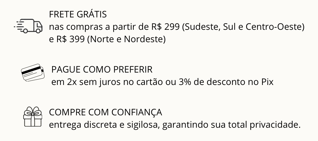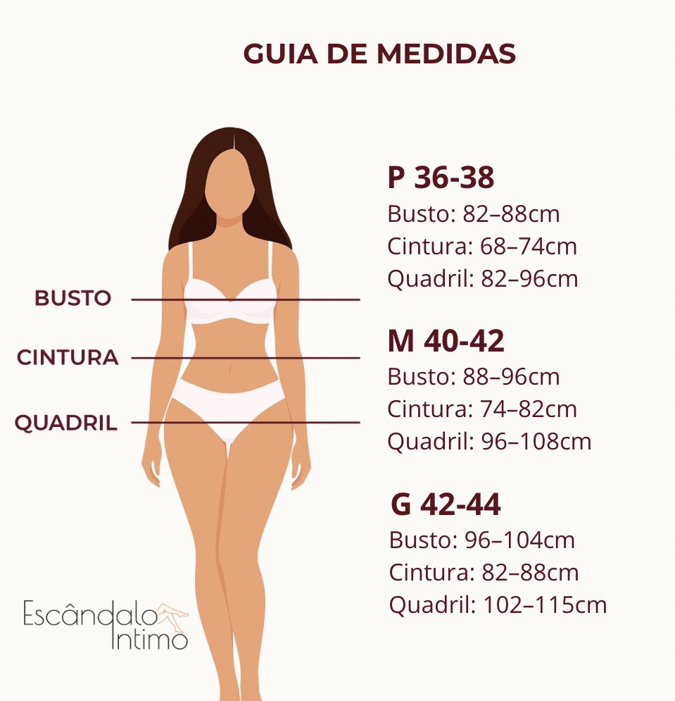Nossas calcinhas são tamanho único com regulagem, vestindo perfeitamente do 36 ao 42.